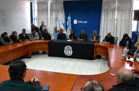 Posteriormente, el presidente Albrecht participó como invitado en la firma del Convenio de Comisión de Estudios entre la UNLaR y el INTA, un acuerdo que permitirá a estudiantes realizar prácticas, trabajos finales e investigaciones con el acompañamiento de ambas instituciones.
